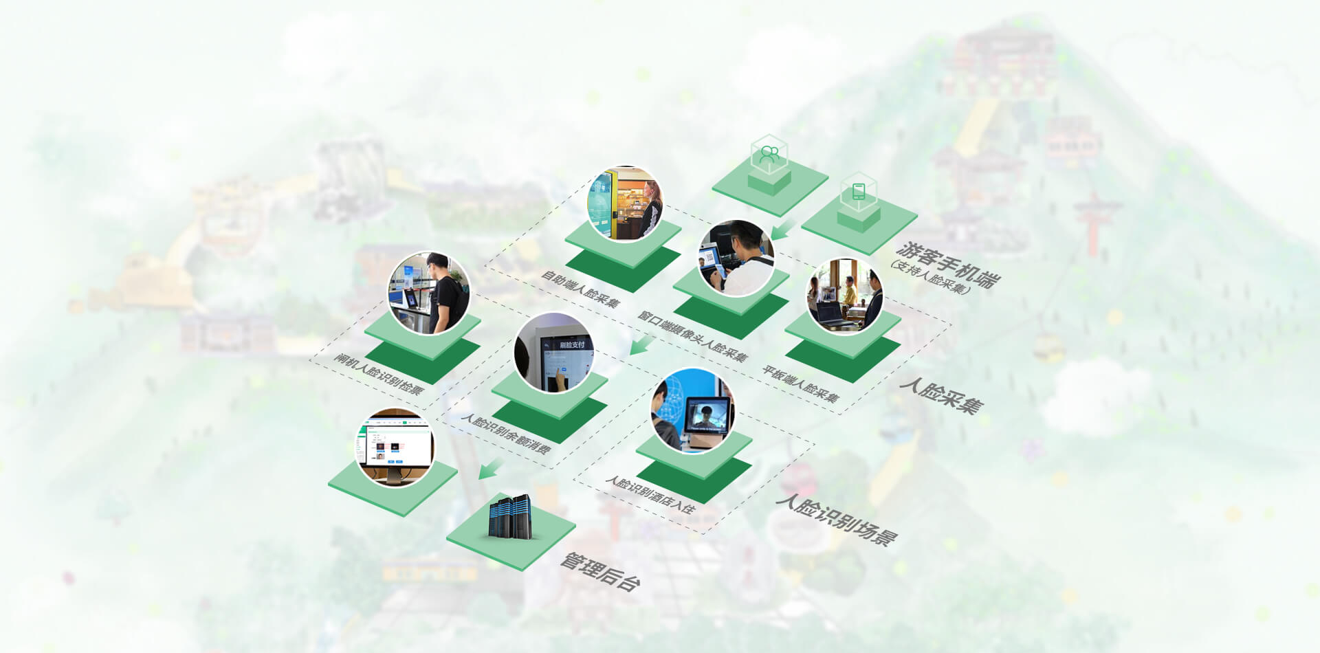 將人臉識別設備與景區(qū)通道閘結合,主要用于游客購買年票或景區(qū)套票時,再也不用擔心忘記帶相關證件或是丟失門票,只需要購買時錄入人臉, 以后再出入景區(qū)時,“刷臉”就可以自由方便出入景區(qū)。提升用戶驗票體驗與效率的同時,增強景區(qū)管理效率。
